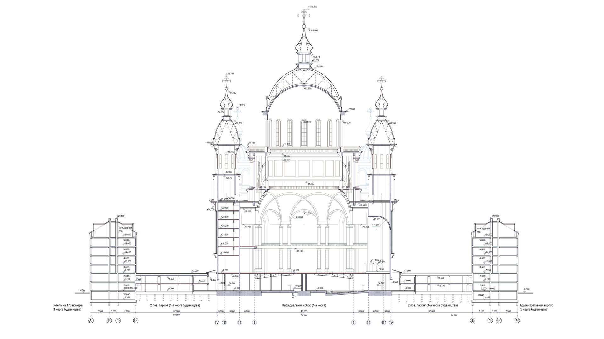 Будівництво Кафедрального собору УПЦ з адміністративними і господарськими приміщеннями та гостьовою автостоянкою по вул. Залізничне шосе, 3 у Печерському районі м. Києва.